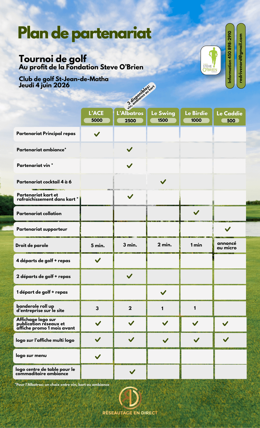 Nous vous invitons donc à découvrir les différentes options de partenariat plus bas. Chaque contribution permet de faire une réelle différence tout en offrant une vitrine professionnelle de qualité.